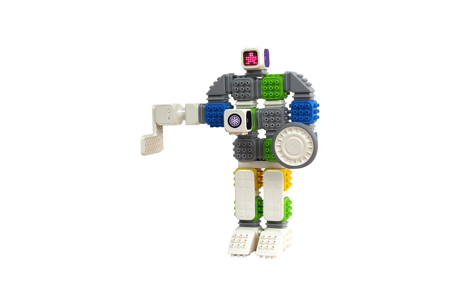 В состав входит 110 деталей с возможностью сборки не менее 20 моделей, в том числе парк развлечения, робот, метро, чучело, башня, гоночная машинка, скорая помощь, вертолет, ящик, снегоочиститель, мост, муха, динозавр, дом, маяк, удочка, будильник, елка, фотоаппарат и фонарь.