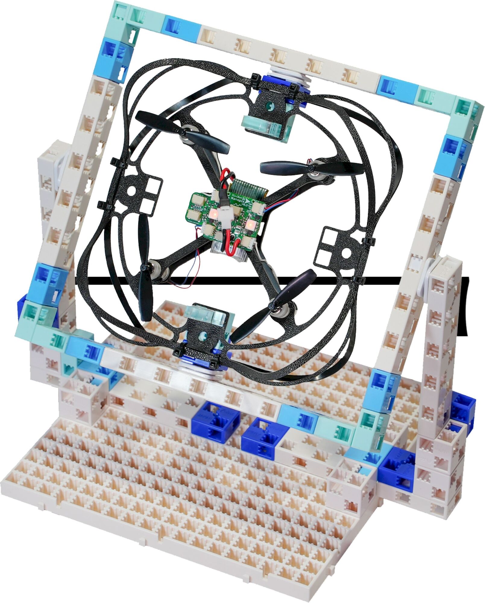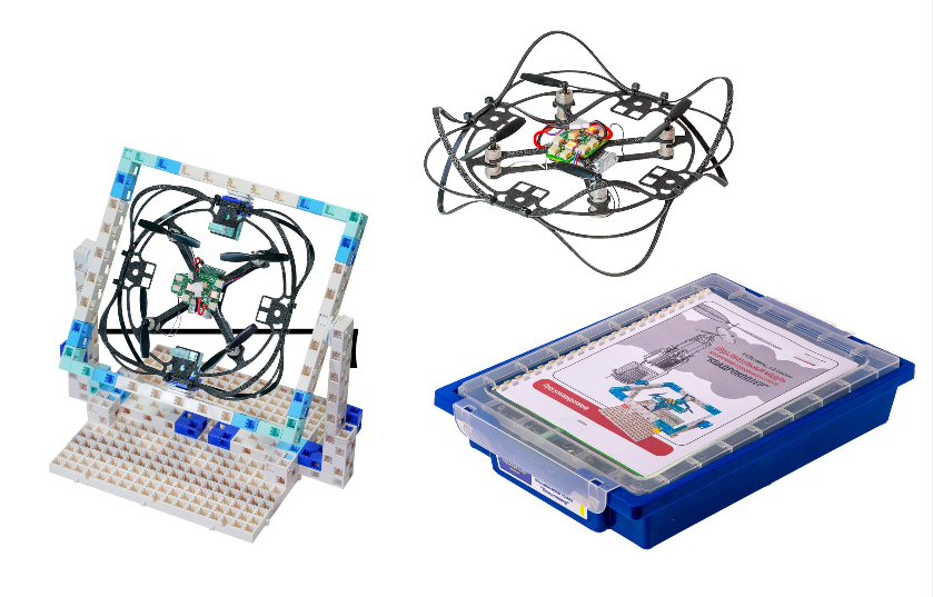 Образовательный модуль позволяет собрать модель квадрокоптера из деталей набора, а после экспериментировать с ним, программировать, запускать и планировать траекторию его полетов.