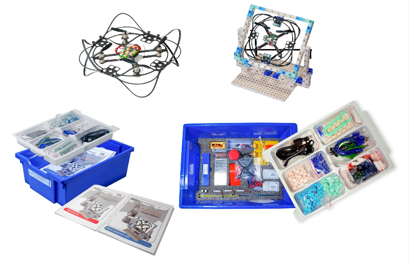 Образовательный модуль позволяет собрать модель квадрокоптера из деталей набора, а после экспериментировать с ним, проводить лабораторные работы, программировать, запускать и планировать траекторию его полетов.