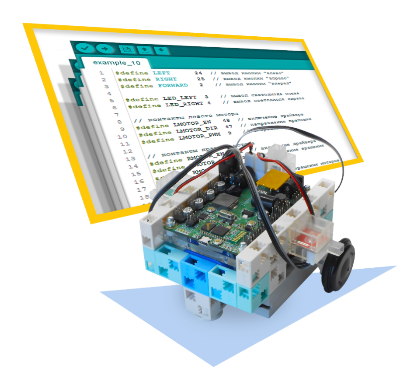 Кроме того, набор познакомит с основными принципами работы электронных приборов (цифровые и аналоговые сигналы, ШИМ модуляция, цифровые протоколы связи), электронными устройствами (светодиод, кнопка, аналоговый и цифровой датчик, сервомотор, мотор постоянного тока, разные устройства индикации) и алгоритмами (цифровые методы обработки сигналов и различные регуляторы), применяемыми в робототехнике и системах с обратной связью.