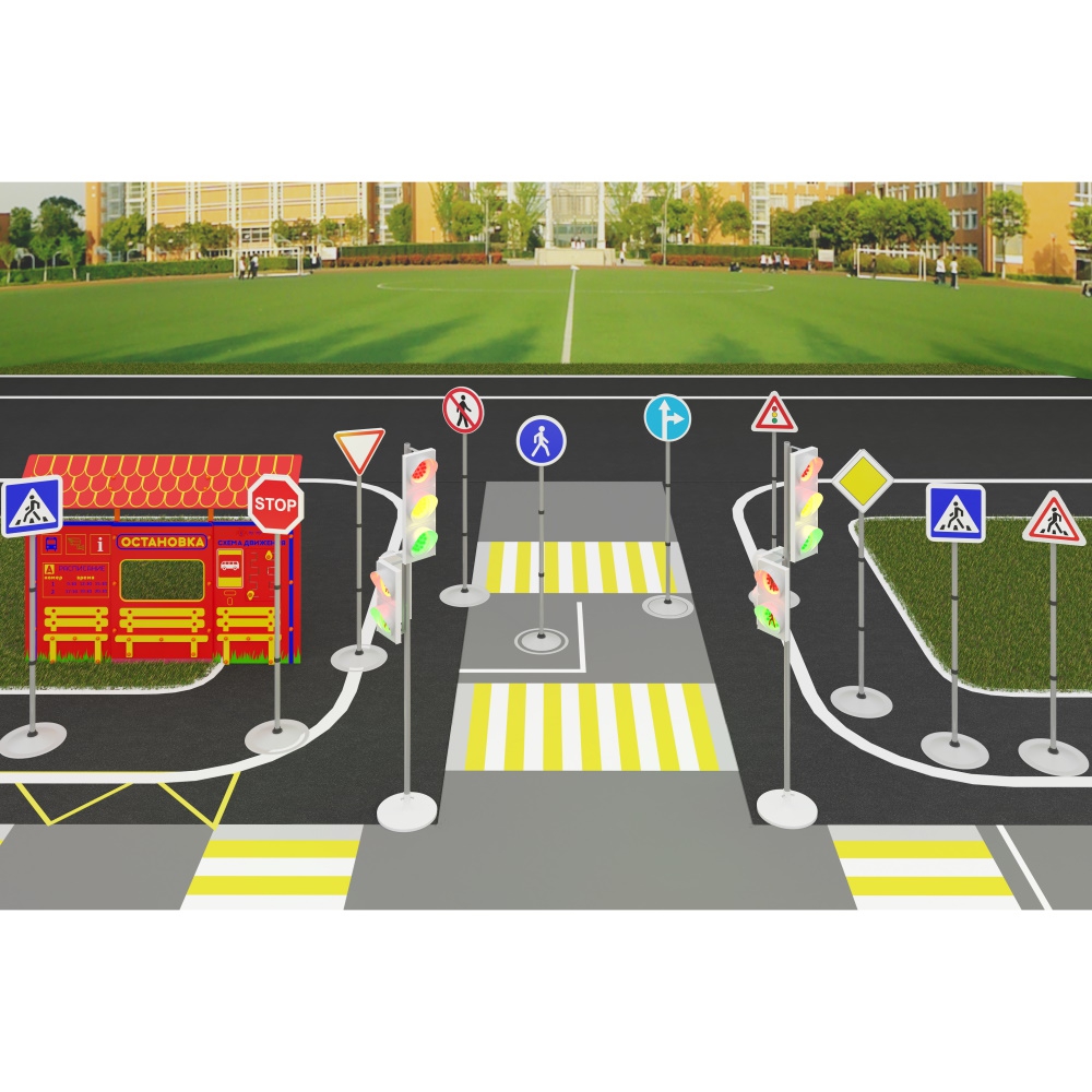 С автогородком "Юный пешеход" можно проводить занятия по изучению ПДД как с точки зрения пешехода, так и водителя! Комплект включает в себя дорожные знаки, светофоры, учебно-игровой макет, с которыми получится создать много различных дорожных ситуаций и изучить необходимые правила поведения на дороге.