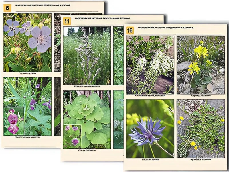 Комплект таблиц по ботанике раздаточных "Многообразие растений. Придорожные и сорные" (16 штук, А4, ламинированные)