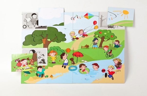 Картинки на игровом поле, в основном, черно-белые, а дети на этих картинках явно не те, с которых хочется брать пример: один ест грязные яблоки, другой стреляет в птиц из рогатки, третий разбрасывает мусор, четвертая жадничает… Давайте покажем им, как надо жить и вести себя, чтобы все хотели с тобой дружить.