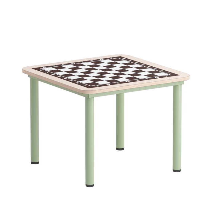 На столешницу наклеена плёнка ПВХ с изображением шахматного поля.