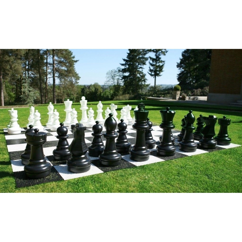 Напольные большие фигуры замечательно подходят для игры на улице. Они изготовлены из полиуретанового пластика высокого качества и окрашены специальным стойким покрытием, что позволяет им выдерживать любые погодные условия – фигуры не портятся от изменения температур, дождя ил повышенной влажности, а также не выгорают на солнце. Шахматные фигуры  выполнены из 2-х частей (в верхей части есть отверстие, позволяющее утяжелять или облегчать фигуры). Ими можно играть даже при сильном ветре.