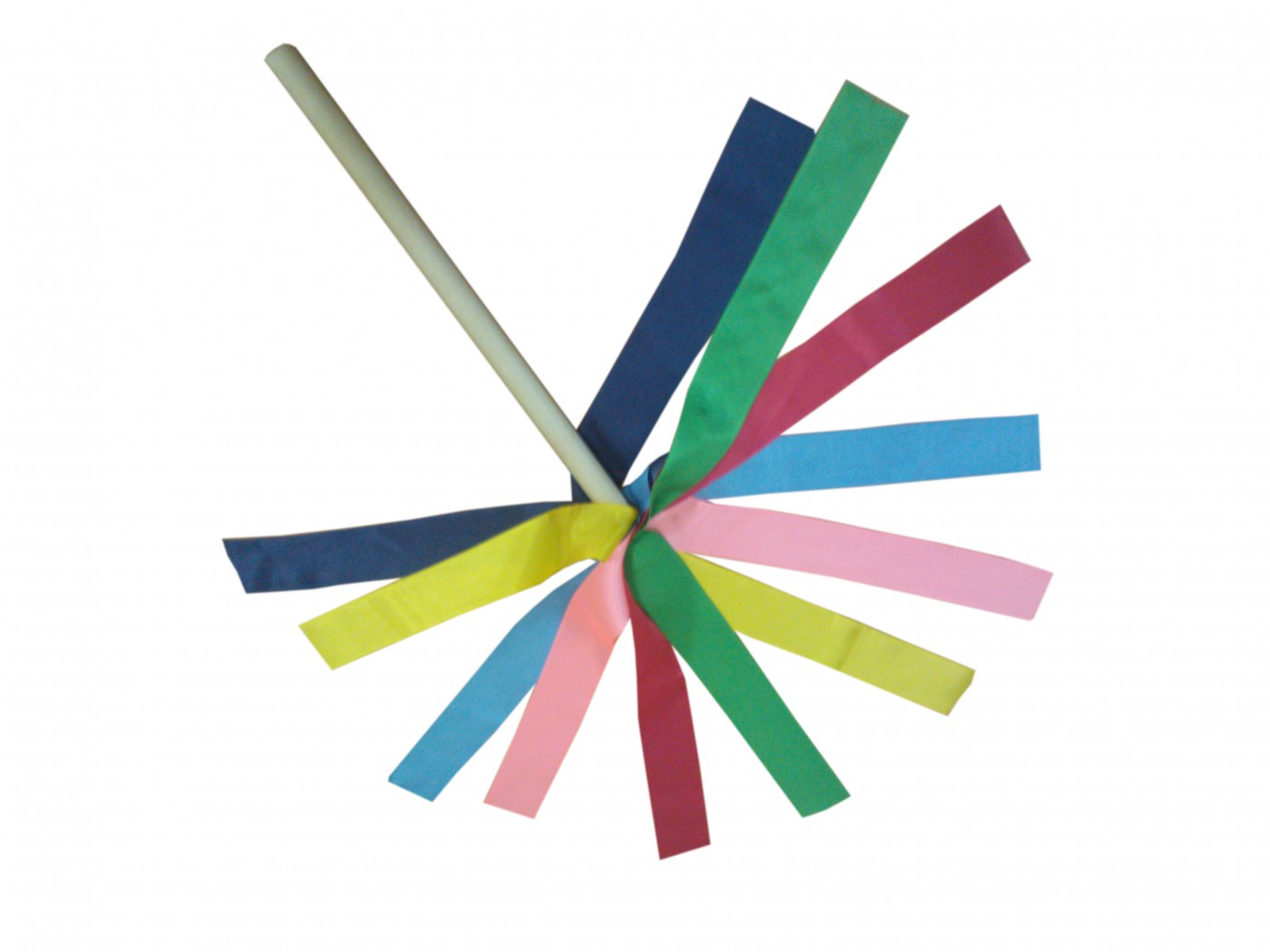 Султанчик из цветных лент, закрепленных на одном конце деревянной палочки - яркий детский снаряд-аксессуар, для использования на занятиях физкультурой, ритмикой, музыкальных и прочих занятиях в детских садах. Для исключения осыпания лент в процессе использования, срез производится горячими ножницами, вследствие которого край запаивается.