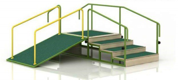 - В зависимости от степени подготовки используются разные поверхности: наклонный пандус, низкие или высокие ступени.