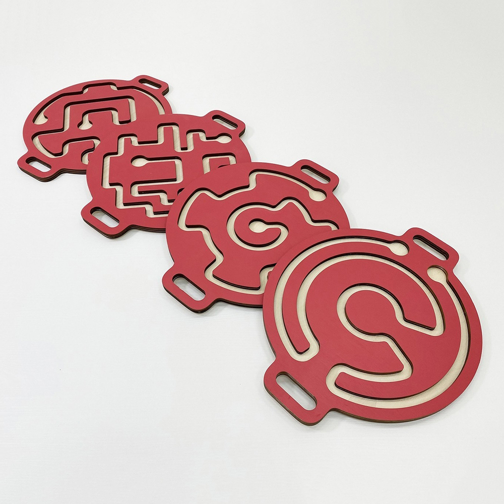Лабиринты изготовлены из берёзовой фанеры и окрашены стойкими к выцветанию полиуретановыми красками без запаха. Сверху всё покрыто огнестойким лаком Renner.