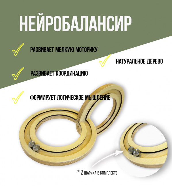 Для того, чтобы у детей происходило правильное и равномерное развитие всех навыков, необходимо иметь специальное оборудование и игрушки. Такие развивающие пособия не только сделают занятия и игры интереснее, но и облегчат вам процесс обучения детей. Представленный нейробалансир - простои и при этом действенное устройство, которое поможет развить у детей логическое мышление, улучшить взаимодействие полушарий, моторику и координацию. Игрушка представляет собой деревянную фигуру в виде восьмерки. В каждой из частей балансира находятся специальные углубления, в которых располагается два металлических шарика. Задача детей состоит в том, чтобы не уронив шарики перемещать их по канавкам. Такая игра поможет научится детям сконцентрироваться и действовать аккуратно.