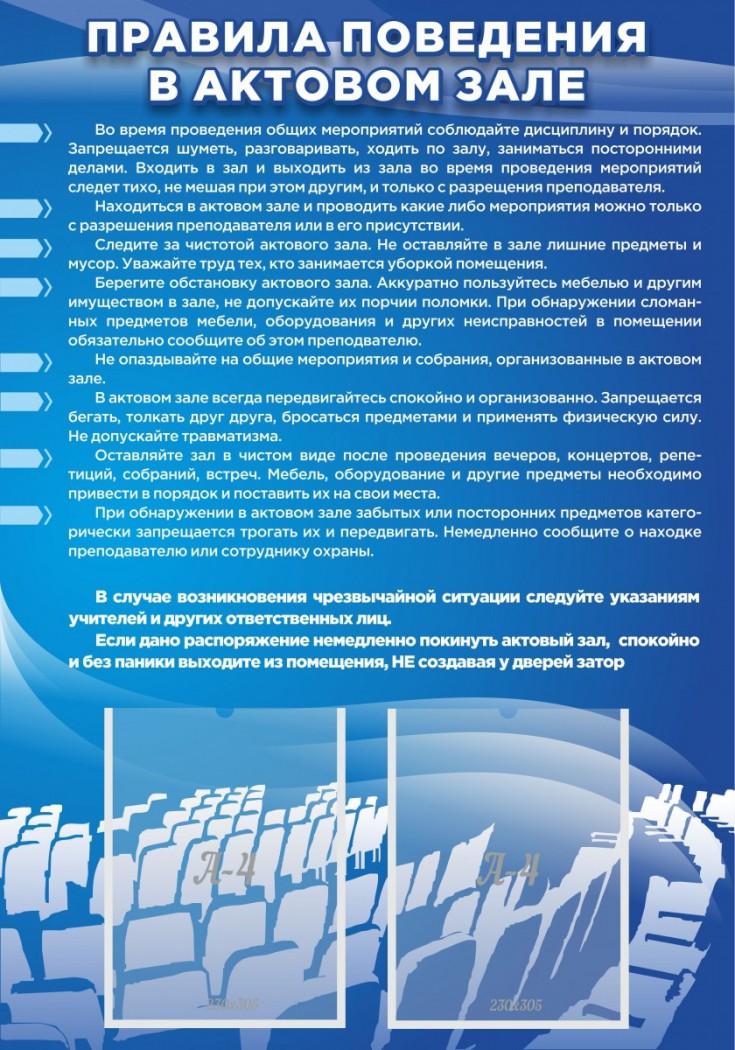 Главная Каталог Стенды Актовый зал Стенд "Правила поведения в актовом зале №2"