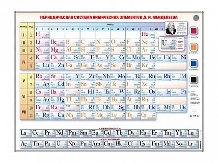 Справочно-информационный стенд предназначен для наглядной работы с периодической системой химических элементов Д. И. Менделеева в образовательных учреждениях на занятиях по химии, физике и другим предметам, при изучении которых необходима информация о свойствах различных химических элементов.