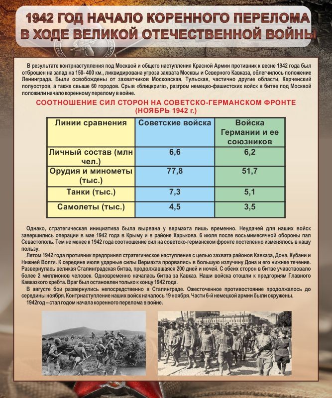 Стенд "1942 год. Начало перелома в ходе Великой Отечественной"