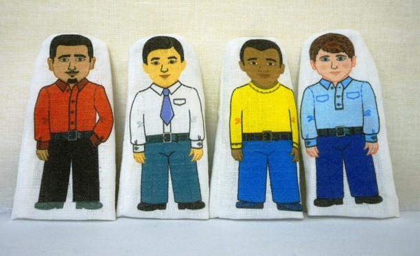 В набор пальчиковых кукол входят 4 основные человеческие расы (европеоидная, монголоидная, негроидная, австралоидная). Рисунок нанесен на ткань с помощью печати.