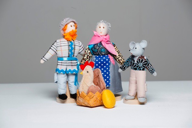 Перед вами – шагающий театр «Курочка Ряба», в который входят следующие персонажи: дед, бабка, мышка, курочка с золотым яйцом.