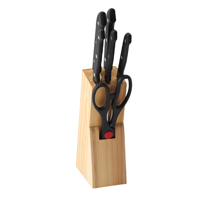 Набор ножей кухонных на подставке 6 предметов: ножи 8 см, 11 см, 13 см, 19 см, 20 см, ножницы.