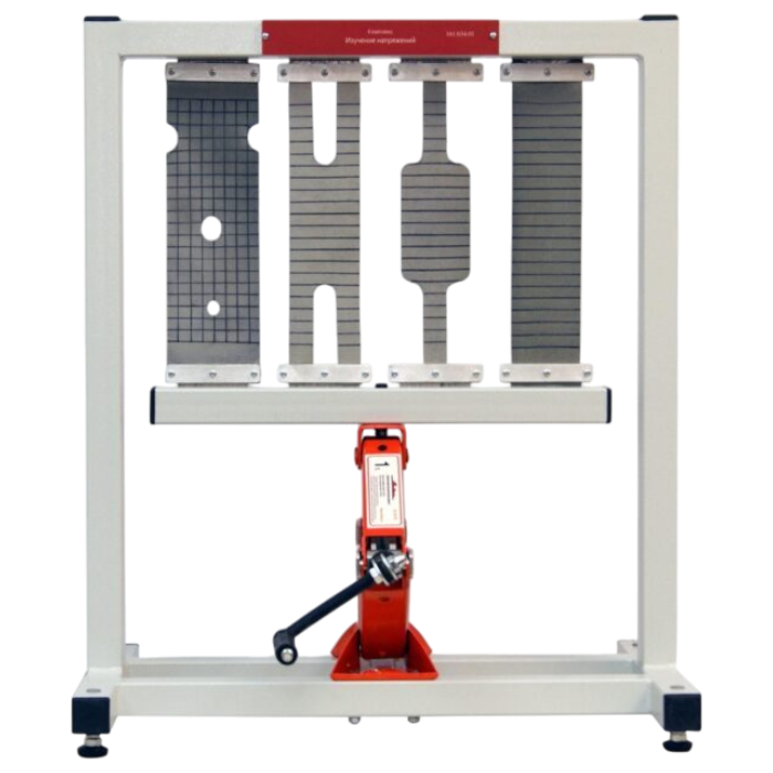 Учебный стенд "Изучение напряжений" позволяет демонстрировать принцип Сен-Венана, изучать концентрацию напряжений и распределений напряжений на примере обратимой деформации пластичных образцов различного профиля.