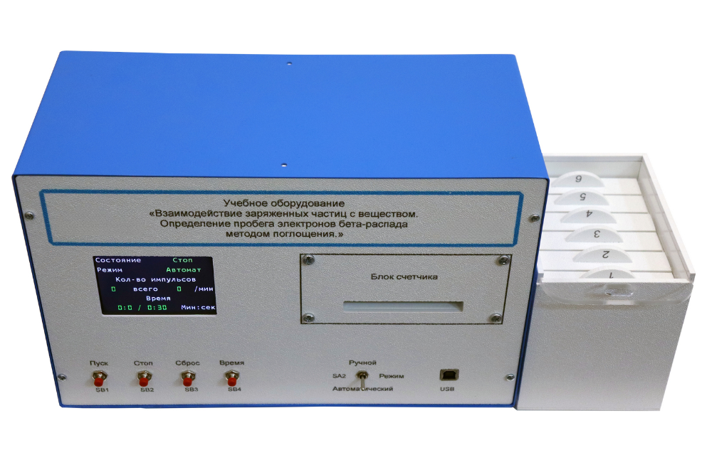 Учебно-моделирующий стенд «Взаимодействие у- частиц с веществом. Определение пробега электронов бета распада методом поглощения», предназначен для проведения лабораторных работ с учащимися по курсу ядерная физика.