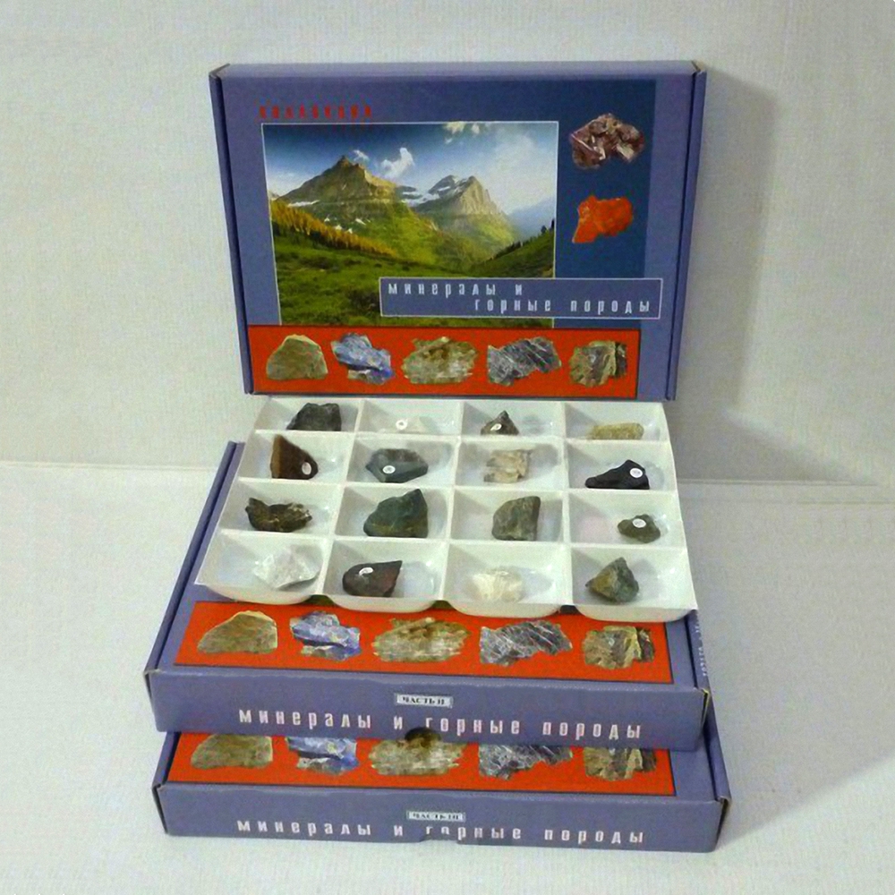 Коллекция "Минералы и горные породы" (49 видов) предназначена для использования в общеобразовательных учреждениях в качестве демонстрационного материала на уроках химии, географии, естествознания и для кружковой работы.
