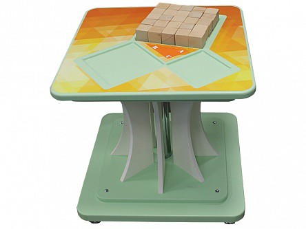 Экспонат представляет собой стол, на котором расположены три квадратных углубления разной величины, сопряженные со сторонами прямоугольного треугольника, и набор кубиков. Кубики либо заполняют два маленьких квадрата, либо один большой.
