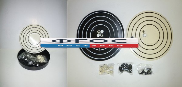 Набор для моделирования электронного строения атомов изготовлен из пластмассы. Представляет собой два основания, имитирующие электронные уровни атомов, на которых можно моделировать с помощью наборов протонов, нейронов, электронов различные модели атомов.