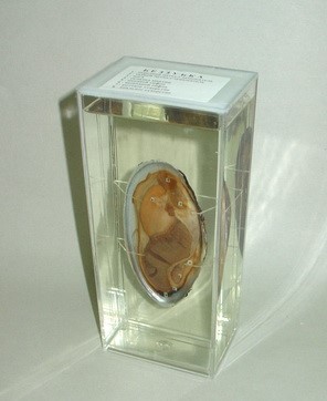 Препарат закреплен на стеклянной пластине,  которая  помещена в консервирующую жидкость и  установлена в пазы прозрачного пластмассового сосуда и пластмассовой крышки. Сосуд герметично закрыт. На препарате представлен пресноводный моллюск - беззубка (двустворчатый моллюск) с одной удаленной  створкой раковины, что дает возможность рассмотреть органы, которые пронумерованы: